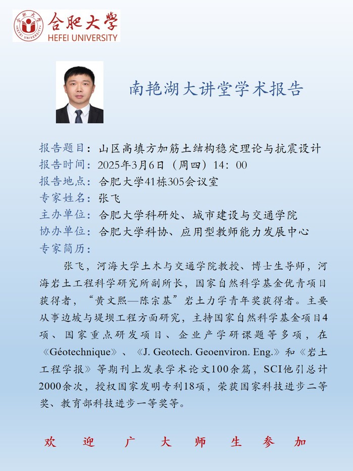 【南艳湖大讲堂】山区高填方加筋土结构稳定理论与抗震设计