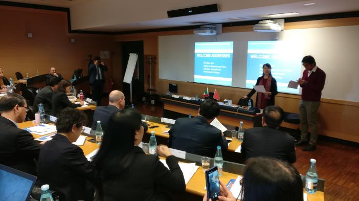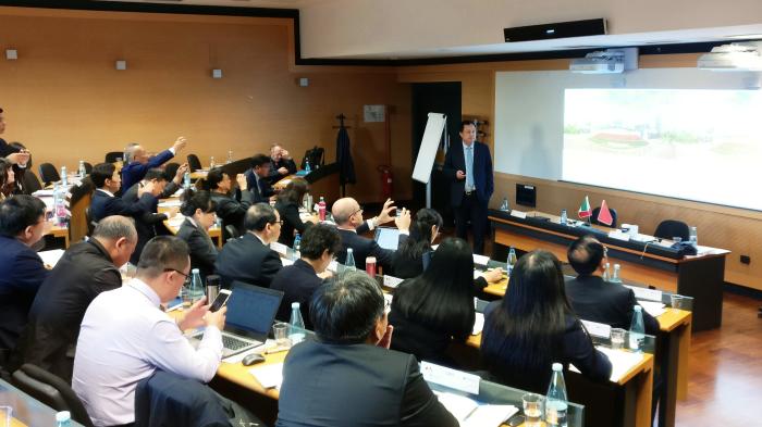 在接下来的大会主旨报告中,意大利高等教育评估专家、米兰理工大学机构与公共事务管理系主任维奇教授为大家介绍了意大利高等教育体系及其在应用型方向的发展特色,尤其是高校支撑企业创新发展方面的模式。机械工程系主任波奇隆尼教授在报告中则更为深入地介绍了意大利高校开展应用型科研及校企合作的模式。他从高校管理模式入手,介绍了各学院、系部及研究院所对科研项目的决策自主性;从欧盟和意大利存在的政府与企业项目资助差距,明确了高校教师和研究人员团队以创新带动企业发展的必然性。中国教育国际交流协会应用型高校国际交流分会理事长、合肥学院蔡敬民教授在报告中为意大利同仁解析了中国发展应用型高等教育的合理性和必要性。他以国家政策、发展历程、内涵建设及经验案例等方面,向意大利学者第一次呈现了中国应用型高校改革发展的完整脉络。