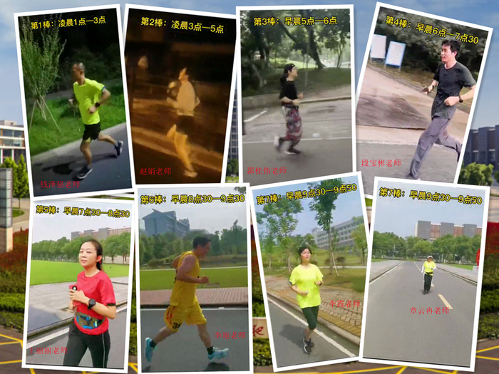 正值期末阶段,老师们的工作任务较为繁重,为了不影响正常工作,经过管梅、钱泽强、赵娟等老师前期的仔细筹划,将6月28日凌晨1点定为此次悦跑接力百公里活动的启动时间。按照既定的分时段安排,钱泽强、赵娟、邵桂伟、段宝彬、王丽丽、李旭、李霞、章云冉等老师顺利完成了接力跑。