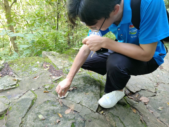维护景区环境,争做绿色护卫。在大别山白马尖景区,队员们沿途捡起丢弃的垃圾,并进行垃圾分类处理。