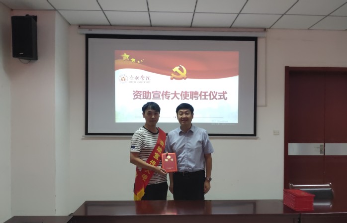为了进一步加强我校学生资助工作宣传力度和资助育人成效,促进形成优良的资助育人氛围,不断提高学校资助工作水平,我校组织新学年“资助宣传大使”聘任工作。9月10日,“资助宣传大使”聘任仪式在行政楼一楼会议室召开。校党委委员、党委学工部部长、学生处处长朱涛参加活动并为新任“资助宣传大使”颁发聘书,资助管理中心主任詹磊主持仪式,14位2019-2020学年国家奖学金、国家励志奖学金获得者获聘“合肥学院资助宣传大使”。获聘同学将在新生报到期间广泛开展学生资助政策宣传,与新生交流个人在校期间学习、生活中的有益经验,帮助新生尽快适应大学生活。