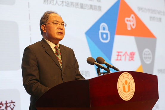 In Bezug auf Hauptthemen hielt Herr Zhao Zhenhua als Minister des Bildungsministeriums der Provinz Anhui eine Rede mit dem Titel „Rückblick und Aussichten für die Hochschulausbildung anwendungsorientierter Fachkräfte“, in der er die Provinz Anhui als Vorbild für den Aufbau angewandter Hochschulen bezeichnete bezüglich der allersten theoretischen und praktischen Bemühungen, der Verstärkung des Strukturdesigns, der Verdeutlichung der Entwicklungslinie, der Vervollständigung des Bewertungssystems und des Aufbaus der Entwicklungslage bei der angewandten Hochschulbildung. In seinem nächsten Entwicklungsplan wies er darauf hin, dass die Provinz Anhui die geistigen Anleitungen vom Staatspräsidenten Xi Jinping weiterhin umsetzen und die Schlüsselrolle bei der Ausbildung angewandter Fachkräfte einnehmen solle, indem es zur Weiterleitung, Entwicklung, Realisierung und Garantie mit höherer Qualität an Bildungsposition für Förderung regionaler wirtschaftlicher und gesellschaftlicher Entwicklung, am Bildungsziel für Ausbildung angewandter Fachkräfte, an Bildungsmodellen für die Vervollkommnung der Integration zwischen Unternehmen und Hochschulen sowie an Politiksystem für spezielle Unterstützung festhalten werde.