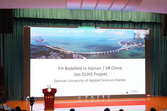 Als Präsidentin der FH Bielefeld hielt Prof. Dr. Ingeborg Schramm-Wölk eine Rede über den Aufbau einer deutschen Hochschulniederlassung in China. Sie meinte, dass diese Hochschulniederlassung von der FH Bielefeld das erste selbstständige Bildungsprogramm Deutschlands in China sei und gleichzeitig das erste selbstständige Bildungsprogramm von einer deutschen staatlichen Hochschule im Ausland sei. Diese Hochschule halte am internationalen und angewandten Bildungskonzept fest und biete notwendige Unterstützung für Kooperation zwischen Unternehmen und Universität, für integrierte Ausbildung von Fachkräften, für Umwandlung von Wissenschaftsstudien in Produkte und für Industrialisierung sowie eine Bühne für die Ausschöpfung potentieller Kompetenzen von Lehrkräften und Studierenden an, so dass es einen großen Einfluss bei der Ausbildung hochqualifizierter Fachkräfte und bei der Realisierung internationaler Hochschulen ausübe.