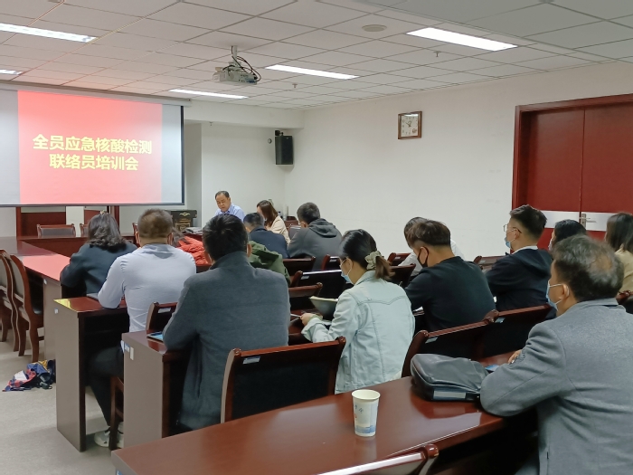 为做好疫情防控全员应急核酸检测,4月13日上午,校党政办、公管处、学生处在行政楼二楼会议室举行应急核酸检测信息登记员培训,邀请临湖社区始信居委会疫情防控专员周玥为信息登记员介绍信息登记系统操作要点、新冠抗原检测试剂使用方法和属地疫情防控管理措施,培训会由公管处处长徐劲松主持。