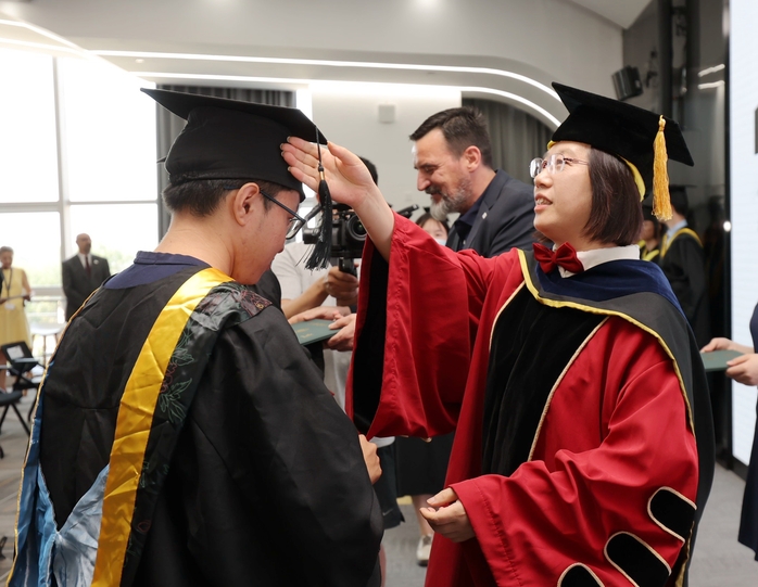 典礼结束后,吴春梅与学生合影留念。