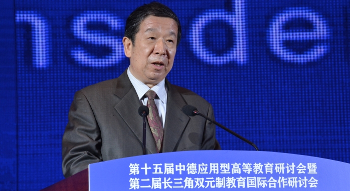主旨报告由安徽省委教育工委委员、教育厅副厅长张庚家主持。安徽省委教育工委委员、教育厅副厅长储常连作题为《深化“四业”融合 服务安徽创新发展》的报告。他表示,要抢抓新机遇,进一步推进学科专业与创新创业、产业企业、学业就业“四业”融通,围绕产业发展需要不断调整优化学科专业,围绕创新创业建设一流学科专业,围绕学业就业深化教育教学改革,围绕学科专业开展创新创业;要下足真功夫,推进“四业”融通落地见效,坚持科教融合,培养创新创业人才,促进“产教城”共融,培养地方需要的专业人才,坚持向应用型深度转变,培养高质量应用型职业人才,坚持深化交流合作,培养国际视野的现代人才。他号召大家共同推动中德应用型高校高质量发展,为两国、为世界高等教育的发展贡献智慧和力量。