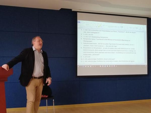 Vom 4. bis zum 7. März hielt Herr Glitza Vorträge über die Strukturierung von Unterrichtseinheiten, Lehrverfahren, Lernaktivität durch Produktions- und Handlungsorientieurng. Außerdem referierte er darüber, wie man die Partizipation der Studierenden steigern könnte.