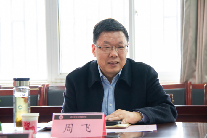 3月13日上午,党委副书记周飞赴语言文化与传媒学院走访调研,与学院领导班子成员和教师代表座谈交流,深入了解学院发展情况,指导学院高质量发展。