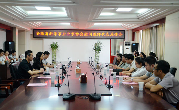 9月9日,在第31个教师节来临之际,安徽省科学家企业家协会副会长吴先良一行来我校访问并慰问了在教育岗位上辛勤耕耘的教师。副校长陈秀在行政楼九楼东会议室接待了来宾,校党政办主任白义香、校工会主席崔国庆陪同与会,部分教师代表参会。