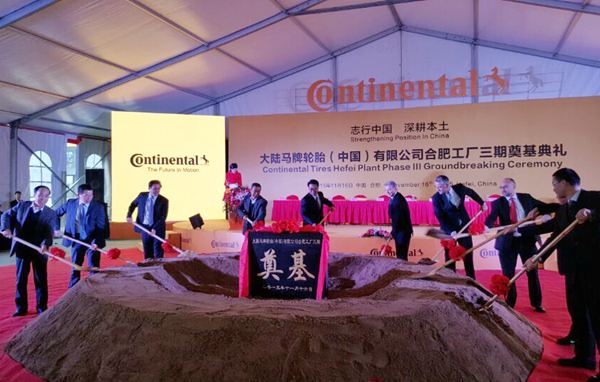 当日,合肥市政府领导、大陆集团轮胎事业部执行副总裁博卡·科勒、合肥海关副关长贾江、大陆集团乘用车胎部亚太区执行副总裁冯贺飞、合肥市常务副市长韩冰等出席了奠基典礼。