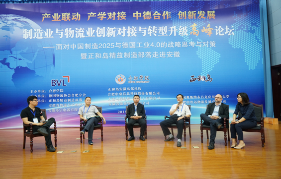 高峰论坛活动丰富紧凑,上午组织代表实地考察参观了德国马牌轮胎(合肥)公司、合肥中鼎信息科技股份有限公司、苏宁电器配送中心、中外运合肥物流有限公司4家知名企业;中午参观了“合肥学院中德合作30周年成果展”。下午的论坛会第一阶段分别是中国物流采购联合会副会长蔡进、共生物流平台CEO卢立新、正和岛副总裁王昆鹏、正和岛精益制造部落酋长王洪艳等4个主题报告。随后,论坛邀请了合肥学院党委副书记丁明、德国马牌轮胎公司总经理迈克尔、北京奇步自动化控制有限公司董事长李奇、陕西航天泵阀科技集团有限公司董事长林忠向等展开了“互动式对话”。 对话紧紧围绕制造业与物流业的对接与协同创新、中国制造2025与德国工业4.0展望与对策、“互联网+”与制造业的转型升级、服务地方产业发展、加强产学对接等主题,开展了深入的研讨交流。